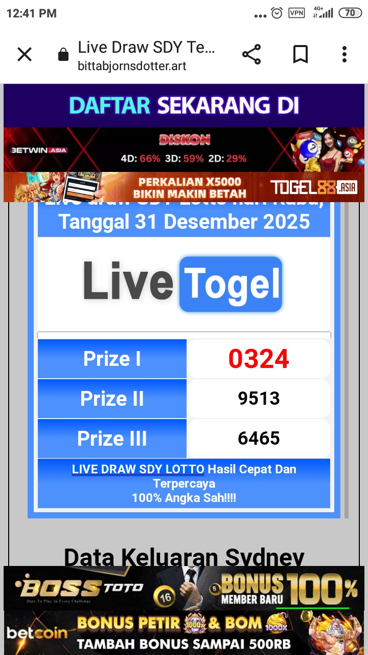 Prediksi Sydney Jumat, 30-01-2026 Merupakan Prediksi Otomatis yang menggabungkan Metode Kalender Togel Dengan Rumus-rumus kontrol yang sudah terbukti keakuratanya.Gunakan Aplikasi Rekap untuk mendapatkan LN TOP. Harap Maklum Jika kadang meleset Prediksi Sydney kita. Jadikan ini sebagai perbandingan saja dan tetap UPS